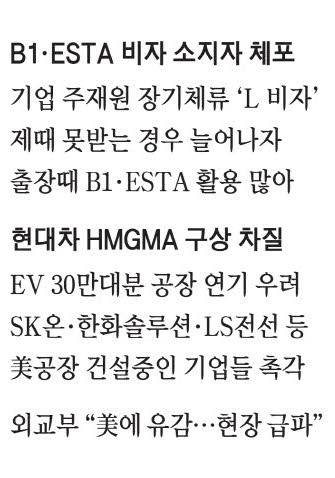 현지 신규 공장 건설과 라인 증설이 늘어나면서 한국에서 파견을 가는 전문인력이 늘어났는데 대부분 장기체류를 위한 미국 비자를 제때 받지 못하고 있기 때문이다.