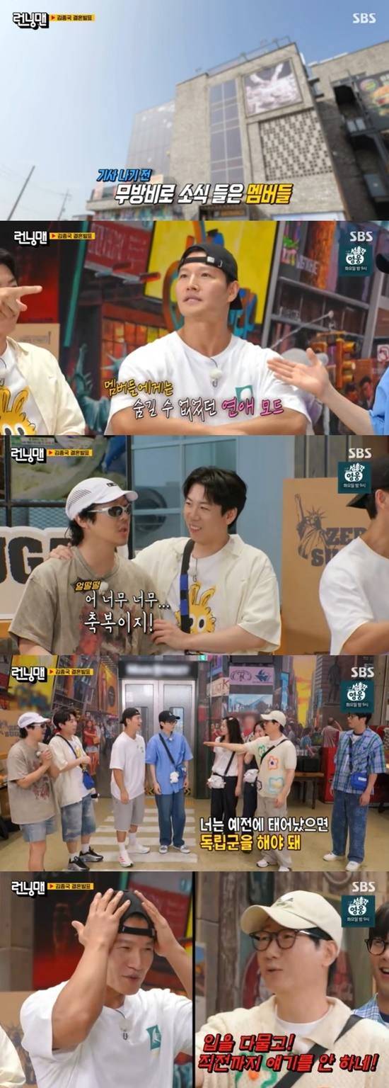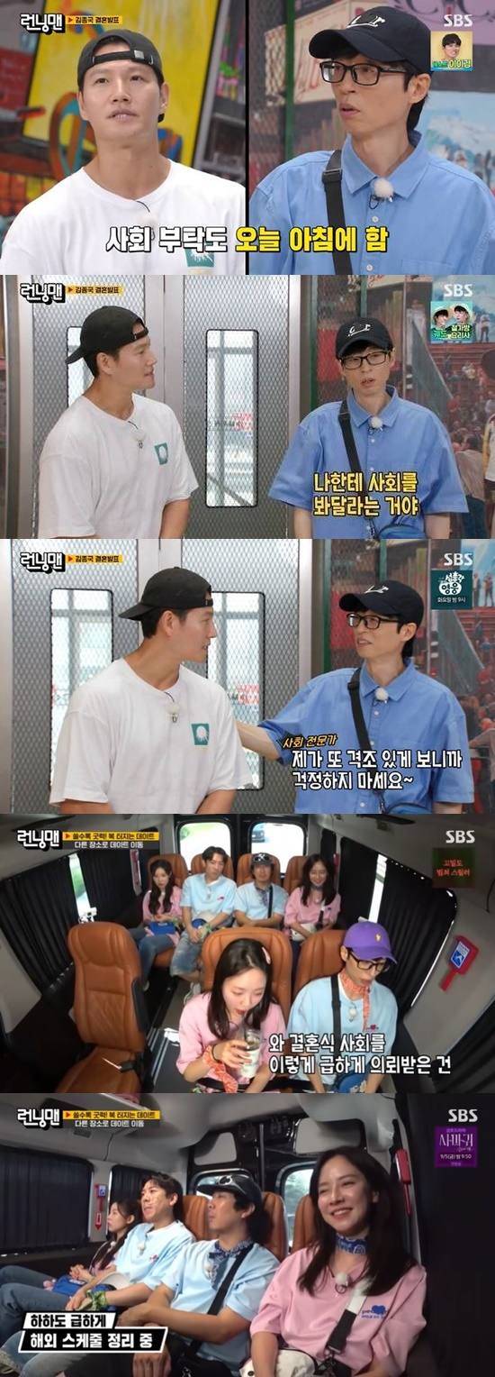 유재석은 김종국이 결혼한다는 소식에 "올해 들었던 소식 중에 제일 놀랐다"고 전했다. 이어 결혼 사회를 부탁받았던 당시를 회상하며 "사실 그날 저도 녹화가 있다. (김)종국이가 30주년 콘서트를 하니까, 그걸로 뭘 하나보다 했는데 나한테 결혼식 사회를 봐달라더라. 녹화 스케줄을 어떻게든 당겨서 사회를 보려고 한다. 제가 또 격조 있게 사회 잘 보니까 걱정하지 마라"라고 전했다.