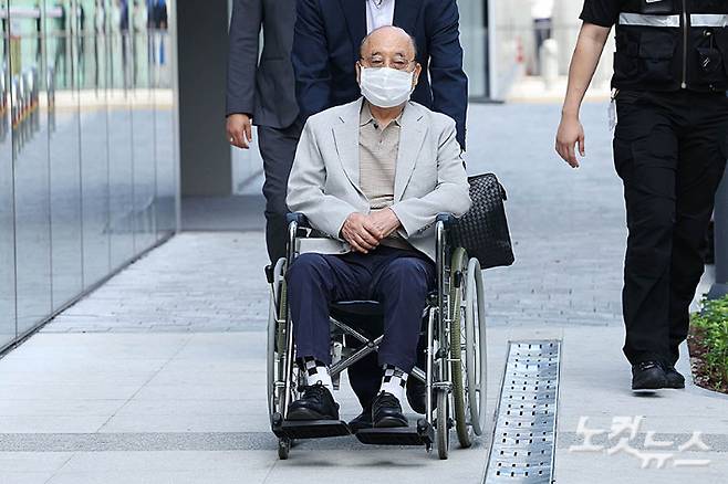 '나토 목걸이 자수' 이봉관 회장, 휠체어 탄 채 특검 출석