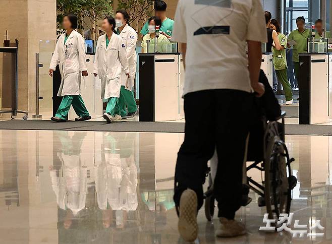 지난해 2월 의과대학 증원 정책에 반발해 병원을 떠났던 전공의들이 수련병원에 복귀한 1일 서울 시내의 한 대학병원에 의료진들이 이동하고 있다. 의료계에 따르면 하반기 전공의 모집이 지난달 29일까지 마무리되어 선발된 인턴·레지던트들은 이날부터 수련을 시작한다. 정확한 복귀 규모는 아직 집계되지 않았지만 빅5 병원을 포함한 수도권 수련병원의 경우 70~80%, 지역은 50% 수준으로 알려졌다. 류영주 기자