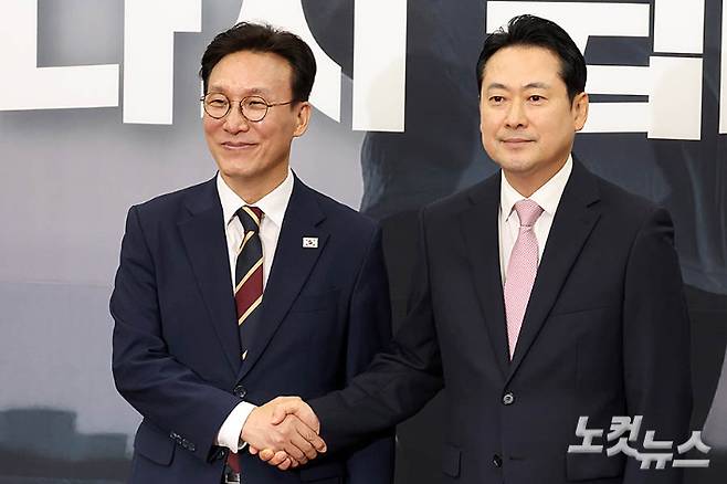 김민석 국무총리가 1일 서울 여의도 국회에서 국민의힘을 찾아 장동혁 대표와 인사를 하고 있다. 장 대표는 "여야가 손 잡기에는 거리가 너무 먼 것 같다"며 "여·야·정 함께 머리를 맞댈 기회들을 만들어달라"고 밝혔다. 이에 대해 김 총리는 "다 함께 머리를 맞대고 해나가는 것이 국회고 정치 아니겠나"라며 "국회에서 여야 정당들이 잘 풀어가면서 정부도 함께 협력하고 뒷받침 할 수 있으면 좋겠다"고 답했다. 윤창원 기자