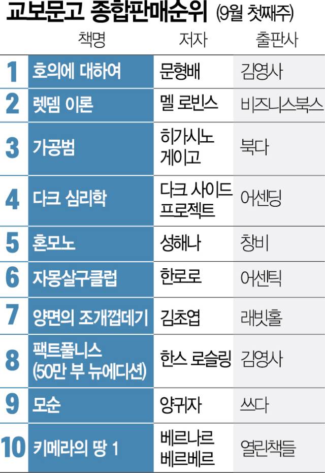 빌 게이츠가 예능 프로그램에서 추천한 인생책 3종도 역주행했다. ‘팩트풀니스’가 종합 8위, ‘세상은 실제로 어떻게 돌아가는가’는 인문 7위, ‘우리 본성의 선한 천사’는 과학 1위에 올랐다. 김초엽의 신작 ‘양면 조개껍데기’도 출간과 함께 7위에 올라 젊은 독자층의 지지를 확인했다.