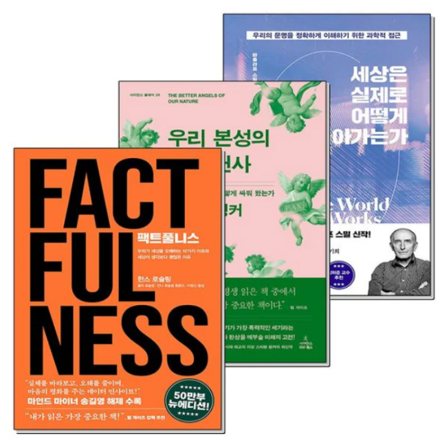 '팩트풀니스'가 종합 8위, '세상은 실제로 어떻게 돌아가는가'는 인문 7위, '우리 본성의 선한 천사'는 과학 1위에 올랐다.