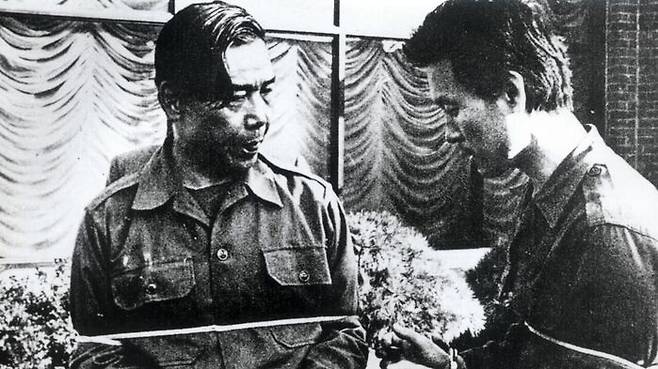 ▲ 1979년 당시 김재규 중정부장이 박정희 전 대통령 시해사건 현장 검증에서 상황을 재연하는 모습.