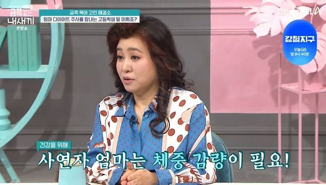 그런 가운데 육아 고민 해결소엔 엄마 다이어트 주사를 탐내는 고등학생 딸 사연이 등장했다.
