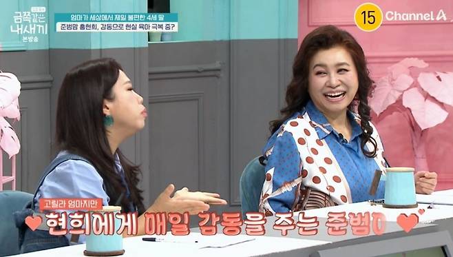 이날 신애라는 홍현희에게 "얼마 전에 아들 준범이한테 감동했다던데"라고 물었고, 홍현희는 "얼마 전이 아니라 오늘 아침에도"라며 사연을 전했다.