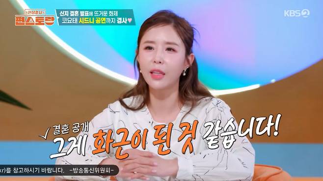 [스포츠조선닷컴 이게은기자] 그룹 코요태 멤버 신지가 예비신랑 문원 논란을 언급했다.