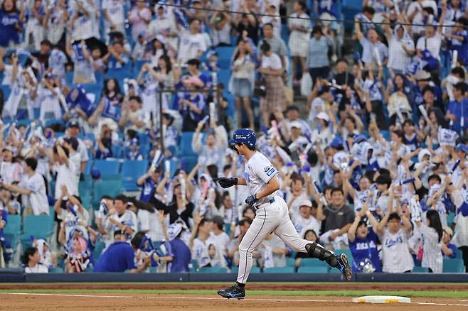선두타자 김지찬의 볼넷과 도루로 만들어진 1사 2루 상황, 구자욱이 바뀐 투수 김동규의 4구째 몸쪽 150km/h 패스트볼을 잡아당겨 우중간 담장을 넘기는 투런포를 쏴 올렸다.