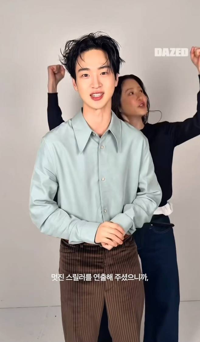 배우 고현정이 후배 장동윤과 함께 유행 밈을 소화하며 화제를 모았다.