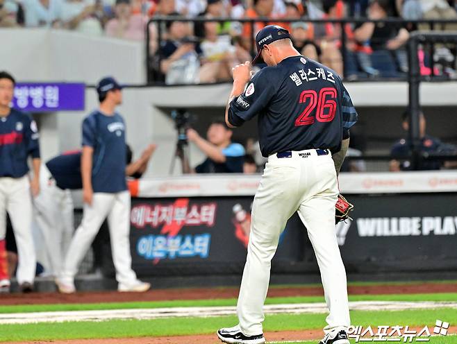 3회말에도 벨라스케즈의 흐름이 불안했다. 벨라스케즈는 3회말 선두타자 박성한에게 볼넷을 내준 뒤 희생번트까지 허용했다. 벨라스케즈는 2사 2루 위기에서 에레디아에게 좌중간 적시타를 맞아 한 점을 더 내줬다.