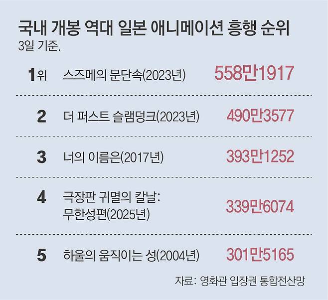‘그들만의 리그’처럼 여겨지던 일본 만화영화들이 국내 극장가에서 이처럼 힘을 발휘하는 이유는 뭘까. 과거에도 일본 만화는 마니아들의 인기를 누렸지만, 이처럼 대중적인 흐름을 타진 못했다. 이는 일본 문화에 대한 젊은 세대의 정서 자체가 달라 사회적 분위기가 바뀌었기 때문이란 분석이 나온다.
