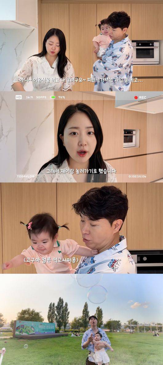 지난 5일 박수홍, 김다예 부부는 유튜브를 통해 재이와 한강공원 나들이가 담긴 영상을 게재했다.