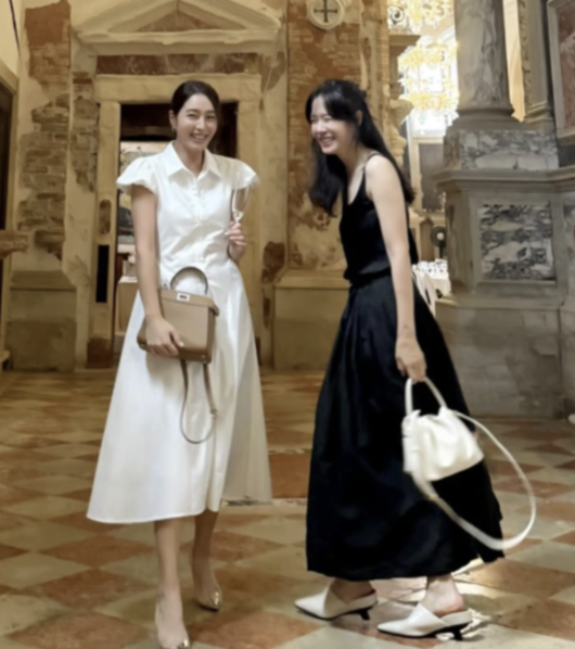 이민정은 1일 SNS에 “Photo by (손예진) in venice”라는 글과 함께 사진을 게재했다. 사진 속 그는 화이트 원피스로 우아한 매력을 뽐냈고, 손예진은 블랙 드레스를 입고 화사한 미소를 지어 팬들의 뜨거운 반응을 얻었다. 두 사람은 같은 소속사에서 활동 중인 오랜 절친으로, 보기 드문 투샷 공개에 “여신들이 함께 있으니 작품 같다”, “이민정·손예진 조합이라니 레전드”라는 반응이 이어졌다.