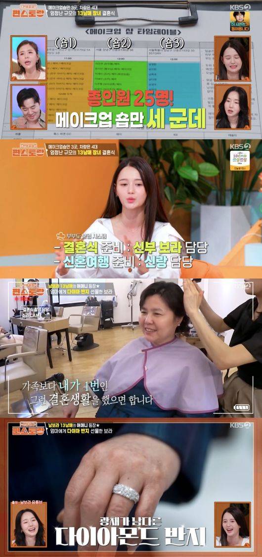 특히 남보라는 결혼 전 어머니에게 다이아몬드 반지를 선물했다고 밝혀 눈길을 끌었다. 그는 “제가 시집 가기 전에 엄마한테 큰 선물 하나 해드렸다”라고 설명했다.