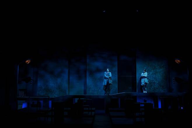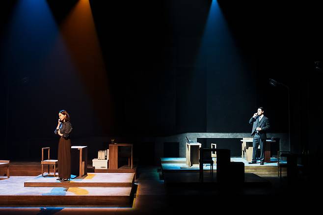 드라마를 바탕으로 해서인지 장면 전환이 빈번하고 속도감도 빠르다. 이를 위해 무대는 단출하게 꾸몄다. 배우들의 동선과 공간 이동도 수시로 이뤄진다. 시각적으로 보는 재미는 부족하지만, 이야기 몰입 상승의 효과가 있다.