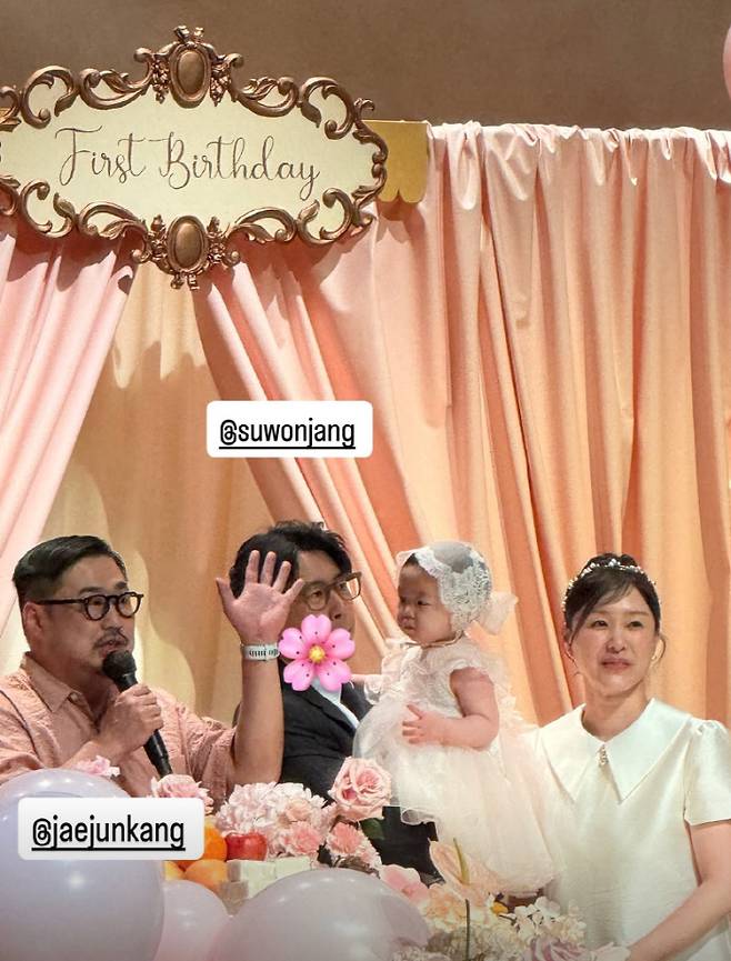 공개된 사진 속에는 장수원과 스타일리스트 출신 아내 지상은, 그리고 딸 서우의 돌잔치가 서울 강남구 역삼동의 한 웨딩홀에서 성황리에 진행된 모습이 담겨 있다.