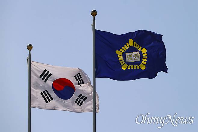| ▲ 서울 서초구 대법원에서 태극기와 법원기가 휘날리고 있다. 2025.4.24 |