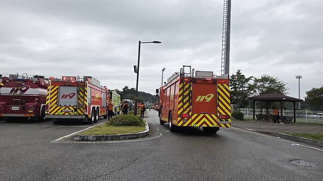 | ▲ 전국 각지에서 집결한 소방차 80여대가 강릉 오봉댐과 시내로 물을 운반하고 있다. 가뭄 극복을 위한 긴급 운반 급수 작전이 한창 진행 중이다. |