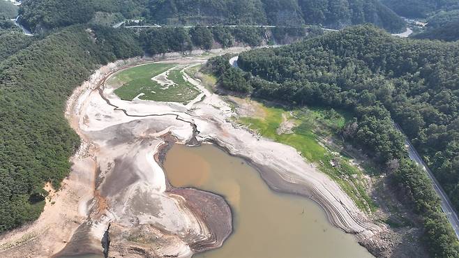 | ▲ 바닥을 드러낸 오봉댐 오봉댐의 저수율이 13%대로 떨어지면서 강릉 지역의 물 공급에 큰 차질이 빚어지고 있다. |