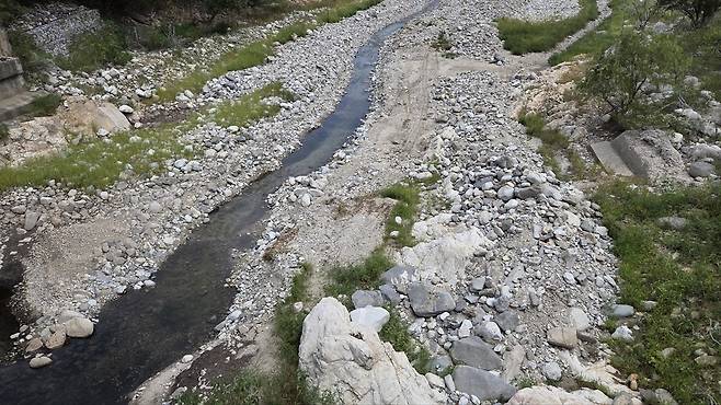 | ▲ 오봉댐으로 물이 졸졸 흐르고 있으나, 공급되는 양은 시민들의 수요를 따라가기에는 턱없이 부족하다. |