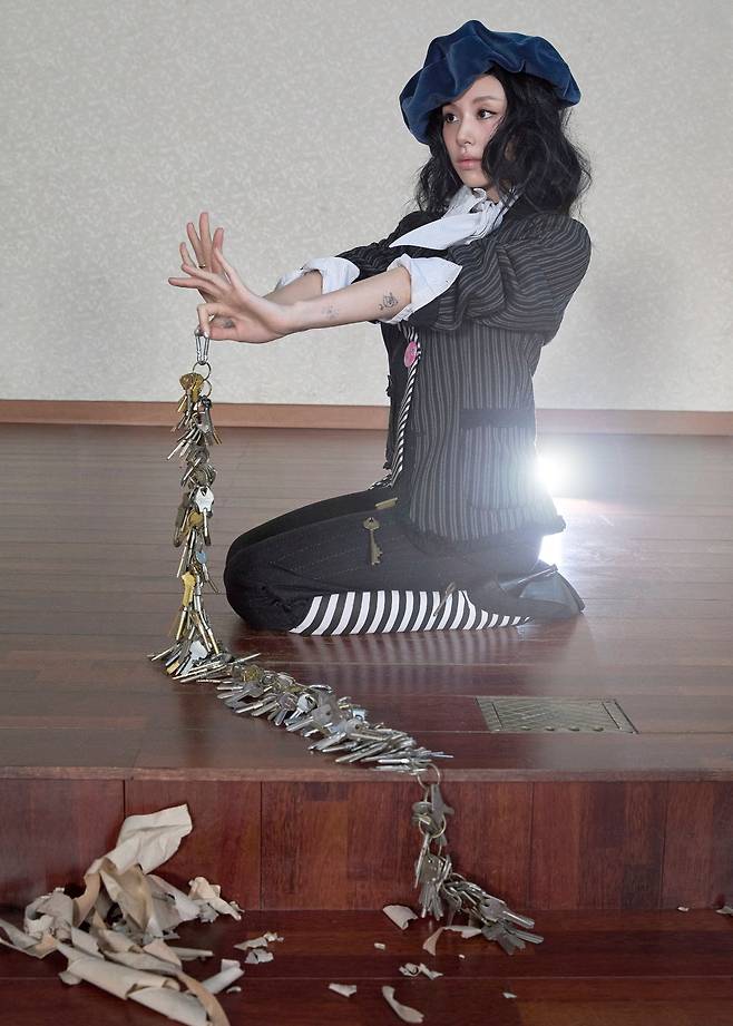 채영이 모험 끝에 성 안으로 들어선 모습. 창문, 열쇠 등 오브제를 활용해 문 너머 미지의 세상을 표현했다. 독특한 연출로 채영만의 유니크함을 강조했다.