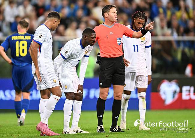 프랑스는 6일(한국시간) 폴란드 브로츠와프에 위치한 타르친스키 아레나에서 우크라이나와의2026 국제축구연맹(FIFA) 북중미 월드컵 유럽 지역 예선 D조 1차전에서 2-0으로 승리했다.