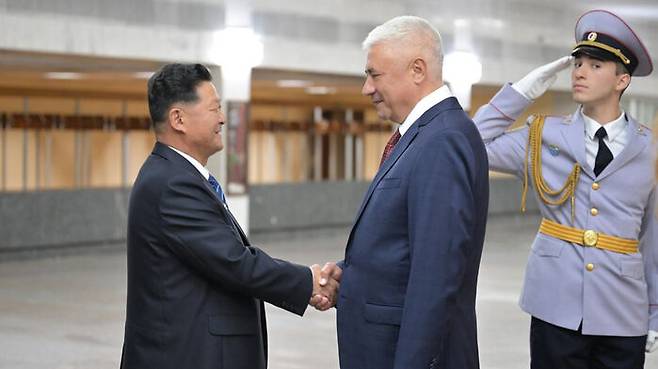 ▲ 방두섭 북한 사회안전상(장관)과 블라디미르 콜로콜체프 러시아 내무부 장관은 2일(현지시간) 모스크바에서 만나 실무회담을 열고 협정을 체결했다고 주북 러시아 대사관이 텔레그램 채널을 통해 밝혔다.