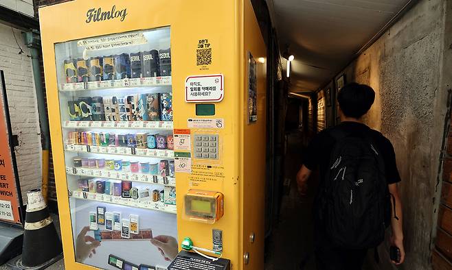“필름 파는 자판기는 냉장고예요. 카메라 필름은 온도에 민감하잖아요. 그래서 적정 온도를 18도로 항상 유지하지요. 영업시간 외 필름을 사러 오시는 분들이 많이 사 가세요. 하루 10통 이상 꾸준히 나갑니다. 주말에는 더 나가요. 필름 자판기가 설치된 여긴 외국인들도 사진 찍으러 많이 오세요.”