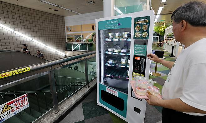 지하철 7호선 상도역 메트로팜 매장 앞에 샐러드 자판기가 설치돼 있다. 출퇴근 직장인들이 즐겨 찾는다.