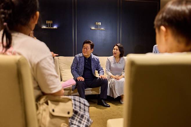 [이재명 대통령과 김혜경 여사가 6일 서울 용산구의 한 영화관에서 영락보린원 원생 30여 명과 함께 한국 애니메이션 '킹 오브 킹스(The King of Kings)'를 관람하기 전 대화를 나누고 있다. (대통령실 제공=연합뉴스)]