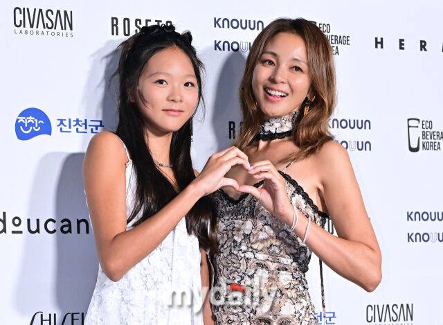 야노 시호의 키는 173cm로 두 사람은 함께 힐을 신고 포즈를 취했다. 딸 추사랑은 엄마와 어깨를 나란히 한 채 포즈를 취했다.