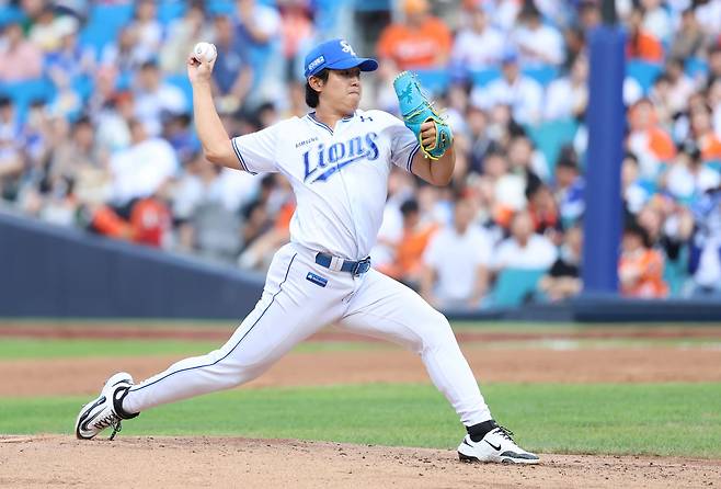양창섭은 6일 대구 삼성라이온즈파크에서 열린 2025 신한 SOL 뱅크 KBO리그 한화 이글스와 홈경기에서 팀의 두 번째 투수로 구원 등판했다.