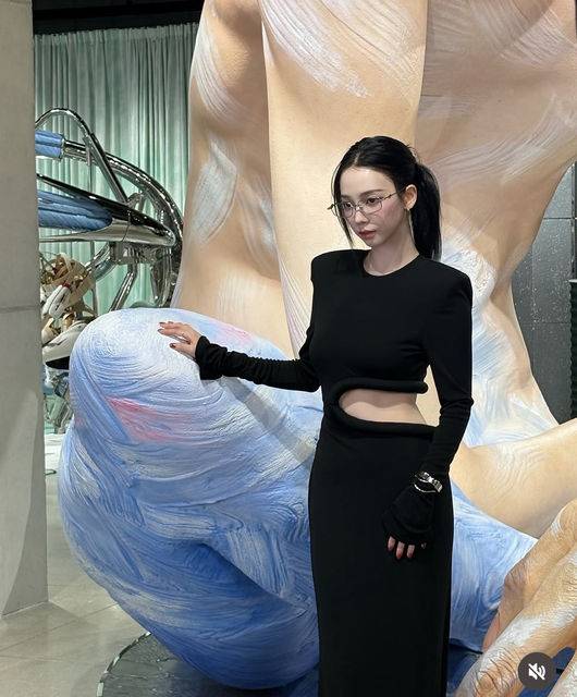 은테가 주는 독특한 느낌을 소화한 카리나는 손등을 덮는 긴 블랙 드레스를 입고도 자신만의 존재를 뽐냈다.