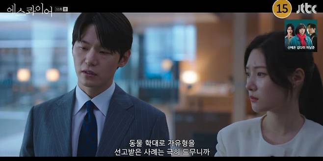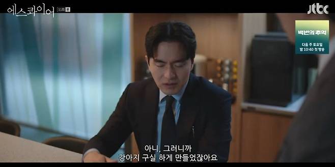 6일 JTBC '에스콰이어'에선 후배 진우(이학주 분)를 반려견 소송의 대리인으로 세우는 석훈(이진욱 분)의 모습이 그려졌다.