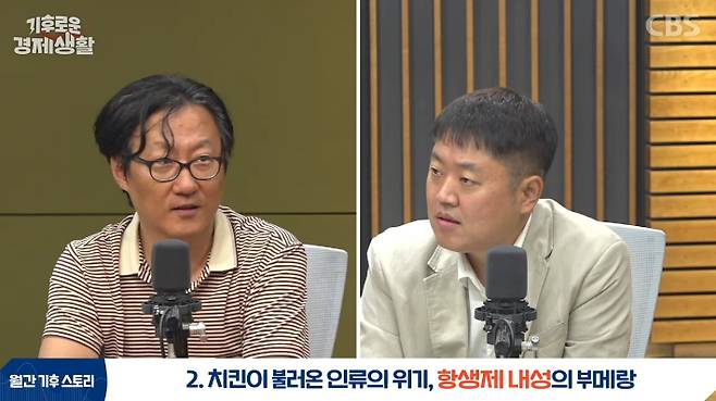 ◇ 남종영> 앞서 기후위기 시대에 닭을 어떻게 길러야 폐사를 막을 수 있는지 이야기드렸다면 이번에는 인간에 좀 더 초점을 맞춰서 항생제 내성에 대해서 이야기를 해볼까 합니다.