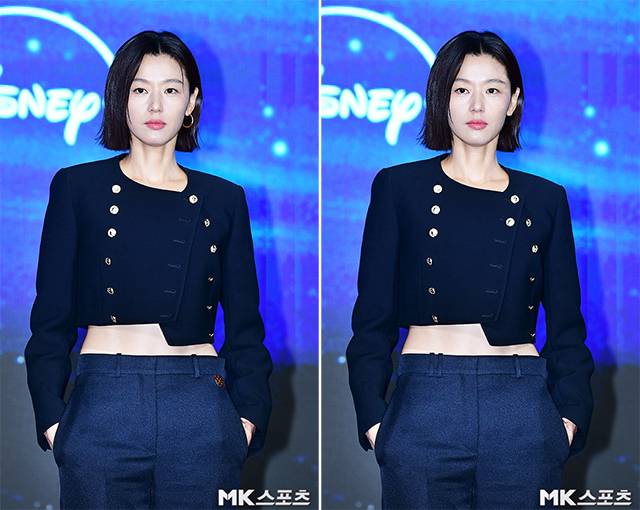이날 제작발표회에서 전지현은 블랙 언밸런스 크롭 재킷과 팬츠를 매치해 군살 없는 사디리 복근을 드러내며 무대에 올라 현장의 시선을 단번에 사로잡았습니다.