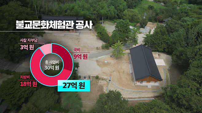 지난해 10월 공사를 시작한 군산 상주사 불교문화체험관. 다도 체험관과 명상 체험관 등 건물 2개를 지었습니다. 문화체육관광부 지원 사업으로, 전체 사업비 30억 원 중 27억 원을 세금으로 보조했습니다. 상주사는 이 공사를 A 건설업체에 맡겼습니다.