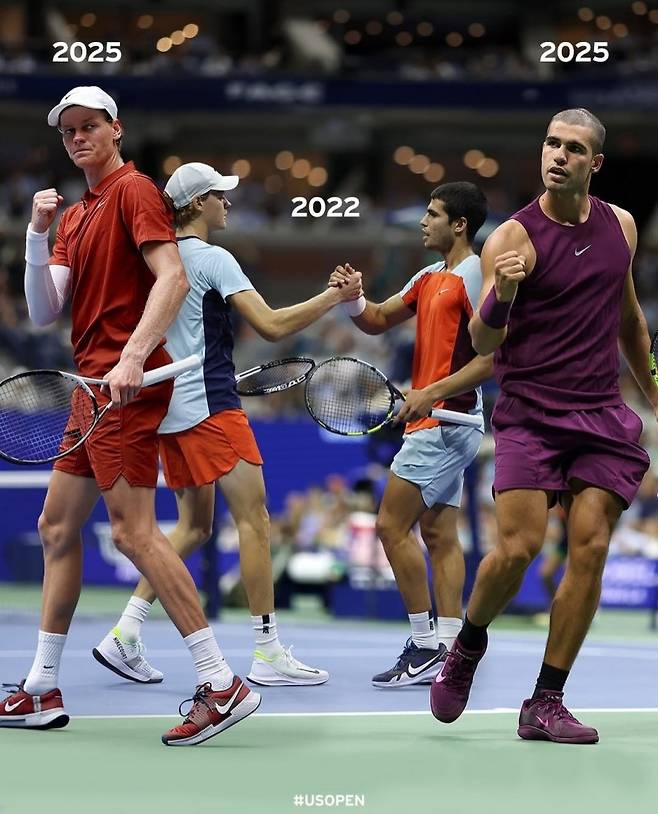 3년 전인 2022년 US오픈 8강전에서 시너와 알카라스는 처음 대접전을 펼쳤습니다. 알카라스가 세트스코어 3-2로 승리했고, 이는 그의 그랜드슬램 첫 우승으로 이어졌습니다.