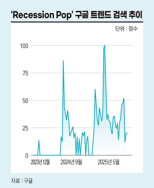 심리적 불황의 그림자는 ‘불황 코어(recession core)’라는 생활 양식으로 확산되고 있다. 불황 코어는 ‘불황(recession)’과 ‘놈코어(normcore)’를 합친 말로 경기침체 상황에 맞춰진 라이프스타일을 뜻한다. 지난 8월 10~16일 ‘recession core’의 글로벌 구글 트렌드 검색량은 최고치(100)에 달했다.