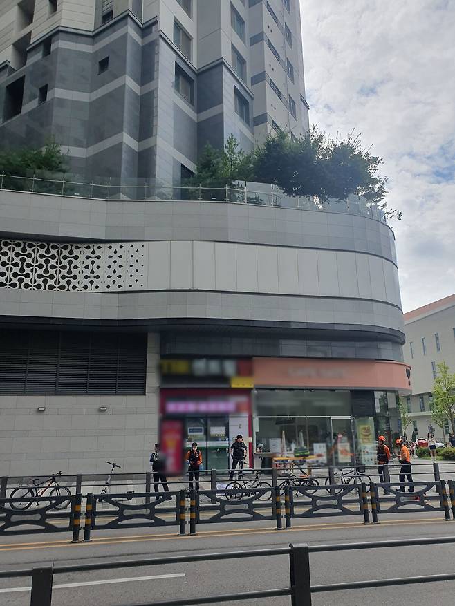 이곳을 지나던 다른 시민은 “인근에서 쿵 소리가 나 주위를 둘러보니, 해당 건물의 높은 곳에서 떨어진 것으로 보이는 사람이 누워 있었다”며 “조금 뒤 소방이 도착했고, 접근을 통제시켰다”고 말했다.