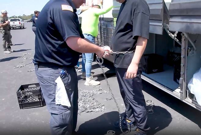| ▲ 미국 이민 단속 당국이 홈페이지를 통해 지난 4일(현지시간) 조지아주 현대차그룹-LG에너지솔루션의 합작 배터리 공장 건설 현장에서 벌인 불법체류·고용 단속 현장 영상을 홈페이지에 공개했다. |