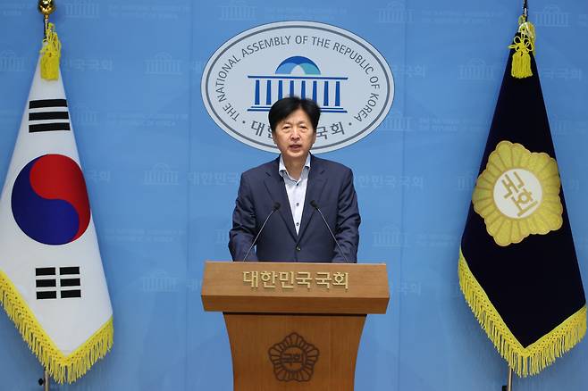 | ▲ 더불어민주당 의원 모임인 '더좋은미래(더미래)'의 오기형 의원이 7일 서울 여의도 국회 소통관 미국 이민 당국의 한국 기업 직원 구금과 관련해 한미동맹과 대미투자 요구에 상응한 대우를 요구하는 기자회견을 하고 있다. |