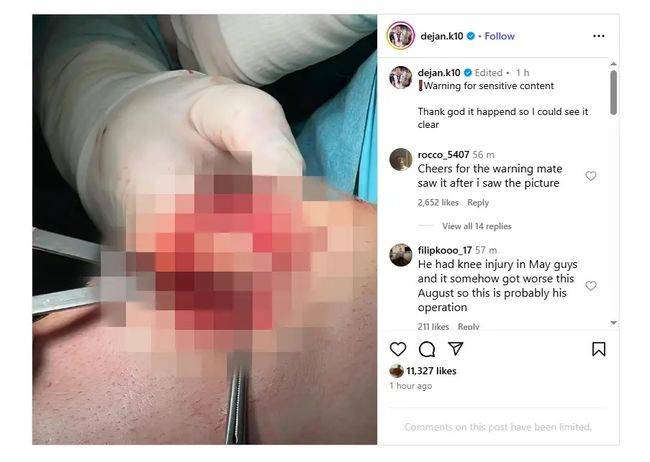 그런 가운데 쿨루셉스키가 소셜 미디어에서 기행을 저지르며 팬들을 놀라게 했다. 그는 수술대 위에서 절개된 무릎 안쪽의 끔찍한 사진을 공유하며 "신이시여 감사합니다. 분명히 볼 수 있어서 다행이다"라고 적었다. "민감한 콘텐츠에 대한 경고"라고 적어두긴 했지만, 사진을 먼저 볼 수밖에 없는 구조이기에 의미가 없었다.