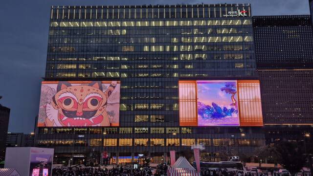 (지디넷코리아=진성우 기자)5일 저녁, 서울 광화문 광장에 모인 시민들의 시선이 하나로 모였다. 그곳에는 최근 리모델링을 마친 KT 사옥을 감싼 거대한 스크린이 있었고, 카운트다운과 함께 점등되자 서울 도심을 환하게 비췄다.