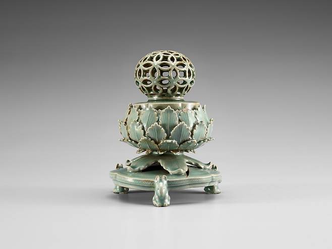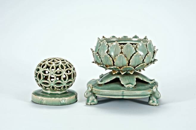 | ▲ 국보 청자 투각칠보문뚜껑 향로. 12세기 고려청자의 전성기 때 만들어진 것이다. 국립중앙박물관 소장 |