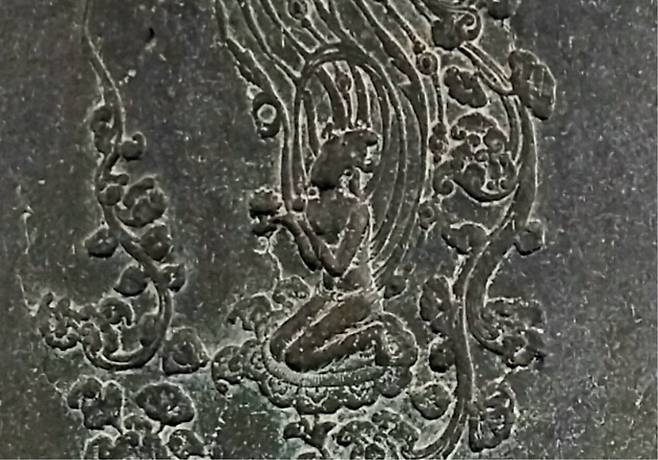 | ▲ 통일신라 때 만들어진 성덕대왕신종(에밀레 종)에도 연꽃 형태의 향로를 두 손으로 받쳐 들고 있는 비천상이 조각돼 있다 |