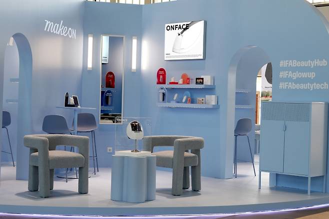 IFA 2025 전시장 '뷰티 허브(Beauty Hub)' 부스에서 메이크온 '스킨 라이트 테라피 3S'와 '젬 소노 테라피 릴리프' 제품 체험도 이어지고 있다. '스킨 라이트 테라피 3S'는 3초 만에 피부 상태를 분석하고 개인 맞춤형 케어 솔루션을 제공하는 스마트 뷰티 디바이스다. '젬 소노 테라피 릴리프'는 초당 300만 회 진동하는 초음파의 원리를 활용한 뷰티 기기다.