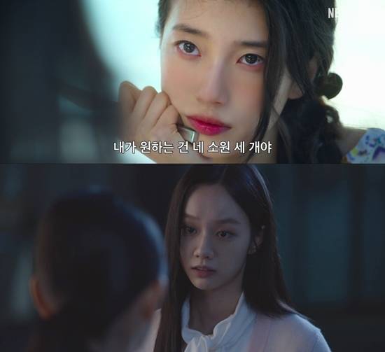 한편 '다 이루어질지니'는 천여 년 만에 깨어난 경력 단절 램프의 정령 지니(김우빈 분)가 감정 결여 인간 가영(수지 분)을 만나 세 가지 소원을 두고 벌이는 스트레스 제로, 판타지 로맨틱 코미디다. 10월 3일 공개.
