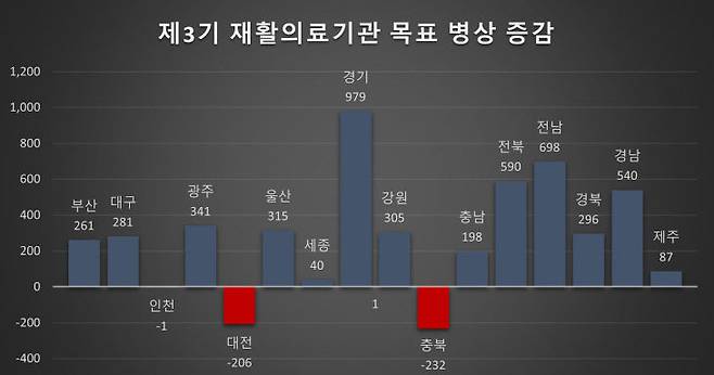 그러나 보건복지부는 고시를 통해 대전의 회복기 재활의료기관 병상 총량을 2026년 3월부터 26% 감축한 583병상, 충북에서도 30.2% 감축한 535병상까지 축소하겠다고 발표했다. 반대로 전국 재활의료 총량은 현재 1만451병상에서 1만6725병상으로 60% 확대된다.