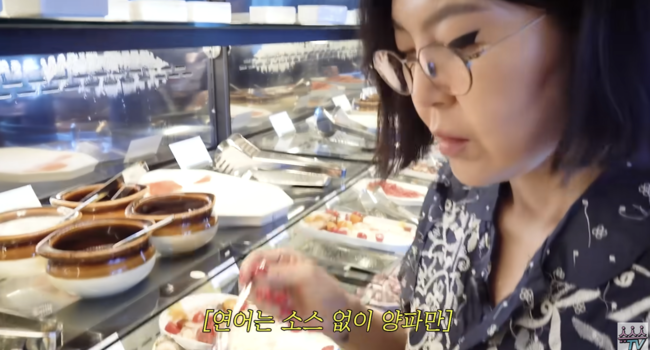 또 문어를 정말 좋아한다는 그는 "연어는 소스를 안먹는다. 소스 없이 양파만"이라며 관리의 신 면모를 보여줬다. '빵순이'인 그는 빵 코너를 보며 "미쳐버리겠다"라고 한탄(?)하기도. 그러면서도 "오늘은 참을게요"라며 절제력을 보여줬다.